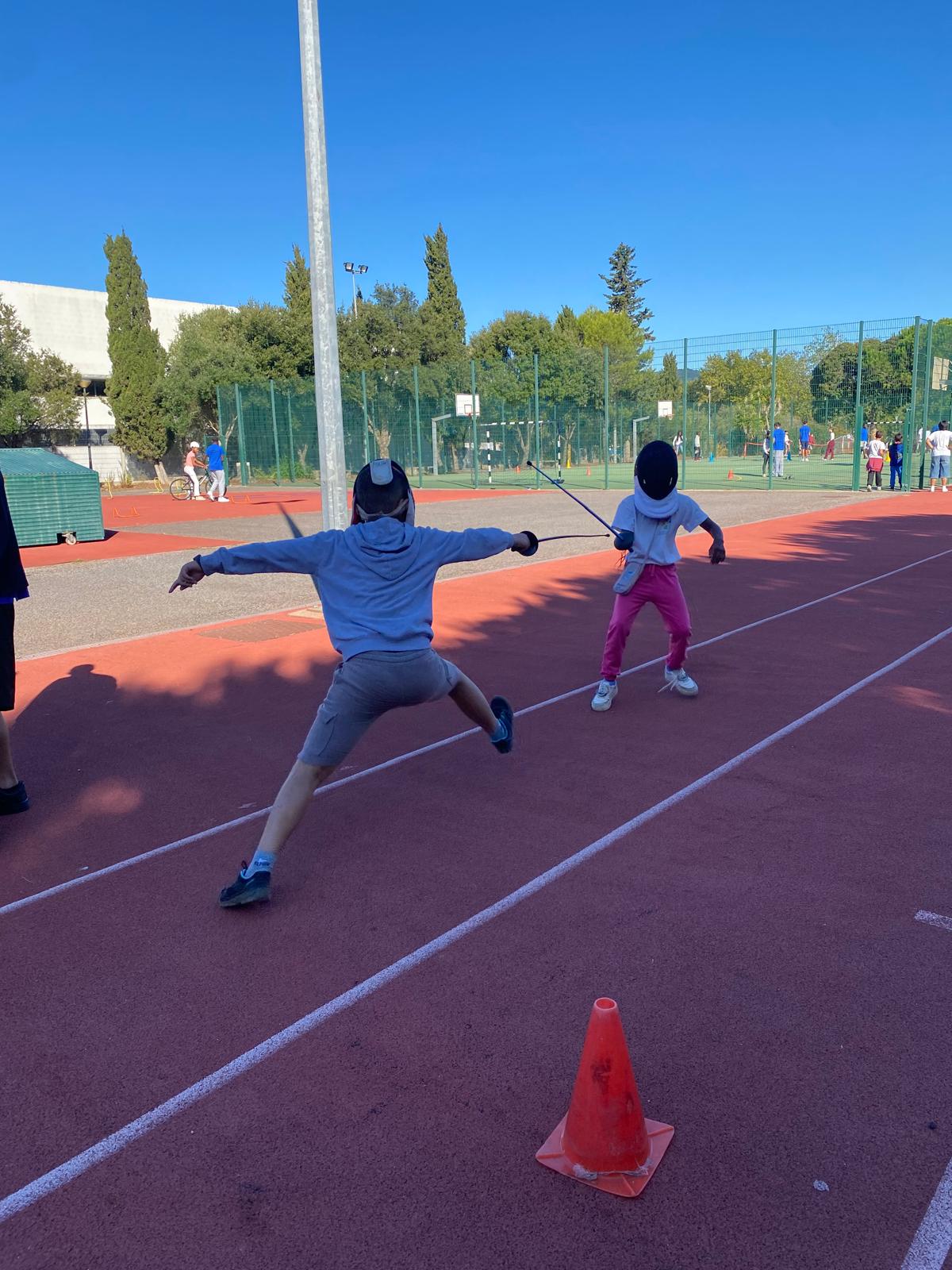 O Agrupamento Ibn Mucana esteve em força no Encontro promovido pelo Clube Atlântico de Esgrima, envolvendo todas as Escolas parceiras do seu projeto. 11 atletas, 4 árbitros e 1 membro da organização, do 3º ao 12º ano, foram os representantes do nosso Agrupamento, com 10 alunos da Escola Básica Fernando José dos Santos, 4 da Escola Básica e Secundária Ibn Mucana e 2 da Escola Básica e Secundária Helena Cidade Moura.