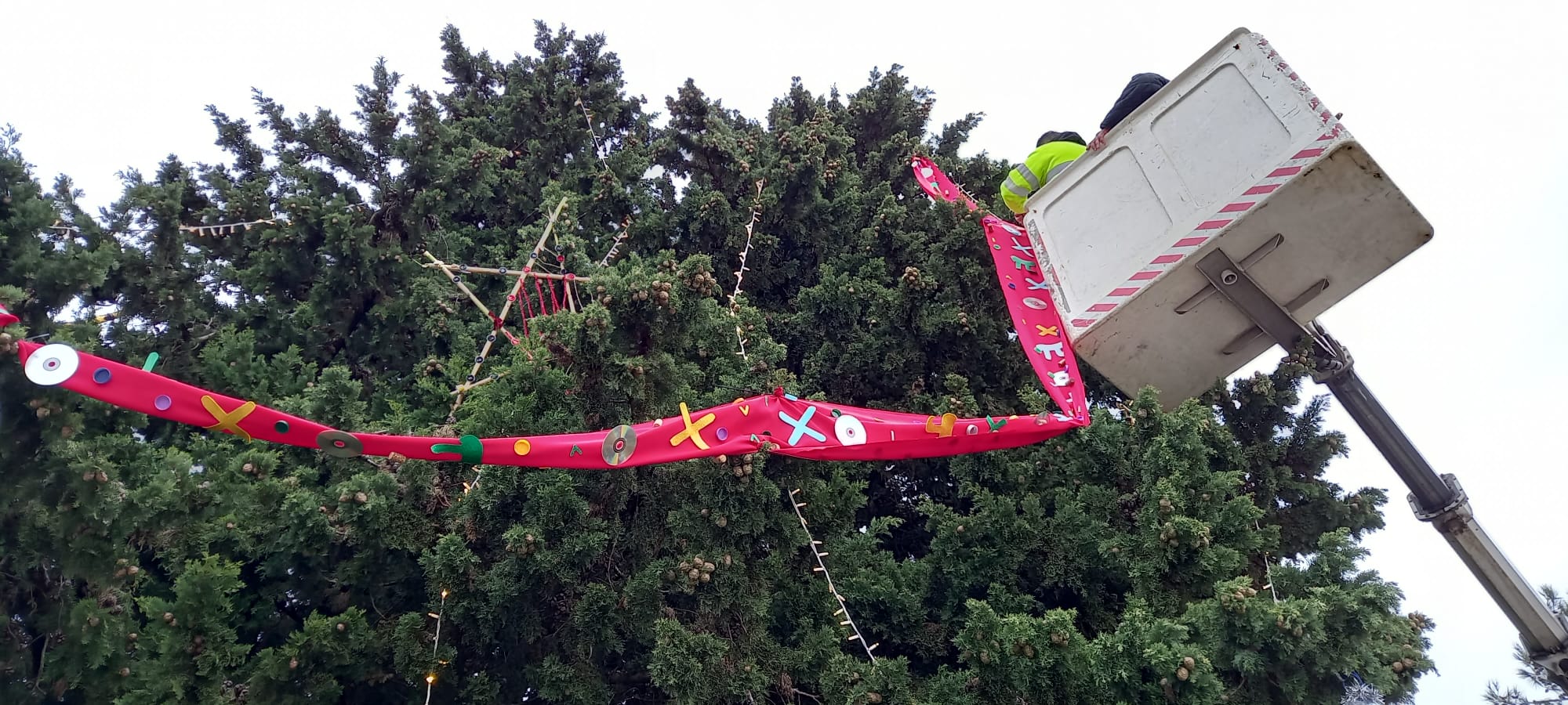 O projeto envolveu ainda alunos desde o pré-escolar até ao 3.º ciclo do ensino básico, bem como os respetivos encarregados de educação, professores, assistentes operacionais e assistentes técnicas, numa colaboração alargada que reforça o caráter inclusivo e intergeracional da atividade. A Junta de Freguesia de Alcabideche assumiu, uma vez mais, um papel fundamental, ao autorizar a utilização dos cedros da rotunda e ao disponibilizar os meios necessários para a colocação dos enfeites, parceria pela qual o Agrupamento dirigiu um especial agradecimento ao presidente José Filipe Ribeiro. Foram igualmente destacados os contributos de José Pataias e José Augusto, cuja experiência técnica permitiu concretizar com segurança e rigor a aplicação dos diversos elementos decorativos. Em nome de toda a comunidade escolar, foram dirigidos votos de felizes festas a todos os participantes, sublinhando-se que o sucesso e a continuidade desta “Árvore de Natal Matematizada” só são possíveis graças ao empenho, à dedicação e ao espírito de colaboração de todas as entidades envolvidas.