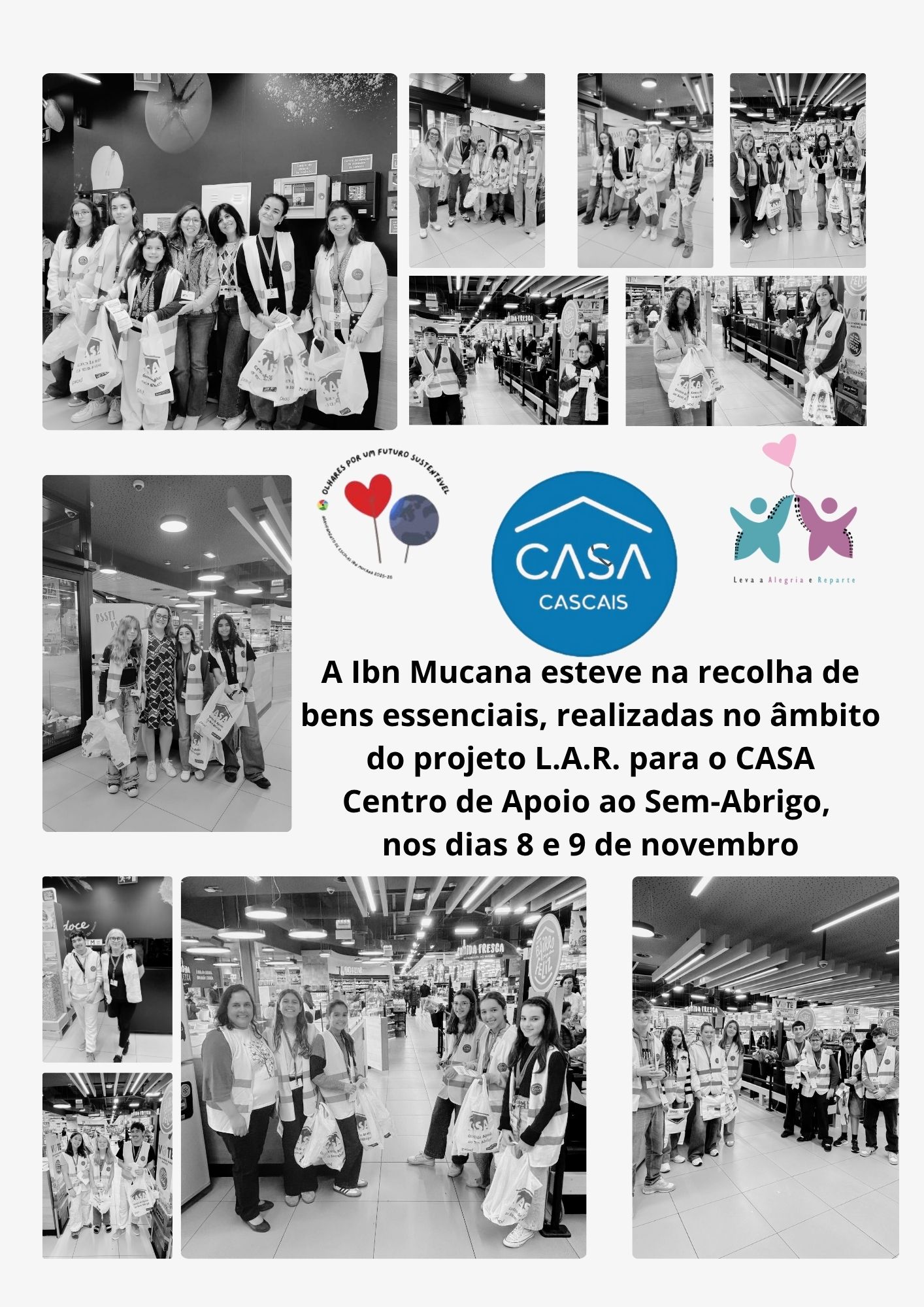 Regista-se, com especial apreço, o envolvimento exemplar dos alunos voluntários que participaram na recolha de bens essenciais, realizadas no âmbito do projeto L.A.R., para o CASA – Centro de Apoio ao Sem-Abrigo (8 e 9 de novembro).