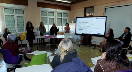Esta equipa italiana encontra-se no nosso país em Job Shadowing, no âmbito do Erasmus+, com o objetivo de conhecer boas práticas e diferentes realidades educativas. Vieram para poder assistir in loco à forma como trabalhamos: didáticas ligadas à Inteligência Artificial e às ferramentas digitais; utilizamos conscientemente os smartphones e redes sociais; usamos metodologias pedagógicas inovadoras; fazemos inclusão e apoio a alunos com necessidades educativas especiais; gerimos turmas multiculturais e desenvolvemos competências linguísticas (plurilinguismo); tornamos eficaz o processo de internacionalização e gestão de projetos Erasmus+ e realizamos experiências de sustentabilidade e práticas de “green school”. Para que todas estas ações fossem possíveis, foi efetuado um plano de partilha de boas práticas contemplando diversas áreas. Assim, durante uma manhã, o grupo visitou as instalações da escola sede e da secundária, interagindo com professores e alunos, assistindo a aulas e comunicando com os coordenadores de diversas atividades conforme o programa estipulado. No final, todos concluíram ter sido um momento de troca de experiências muito enriquecedor, ficando a promessa de realização de futuras parcerias no âmbito do Erasmus+.