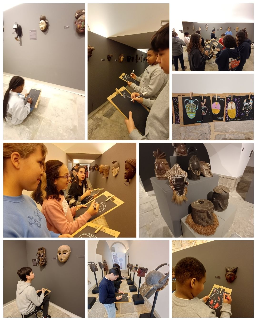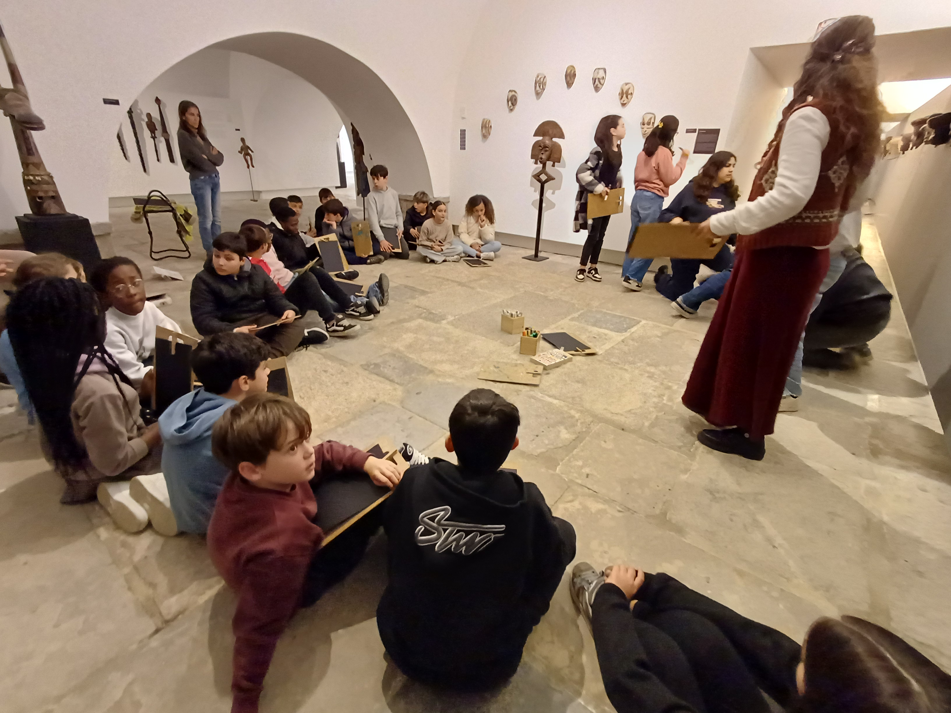 Durante a visita guiada, os alunos participaram numa atividade artística, na qual escolheram uma máscara da exposição para a reproduzir através da pintura, atribuindo-lhe um poder simbólico criado por si. Como forma de integrar o espírito das tradições africanas, dançaram e cantaram, recriando um ritual de boas-vindas inspirado nas culturas representadas na exposição.