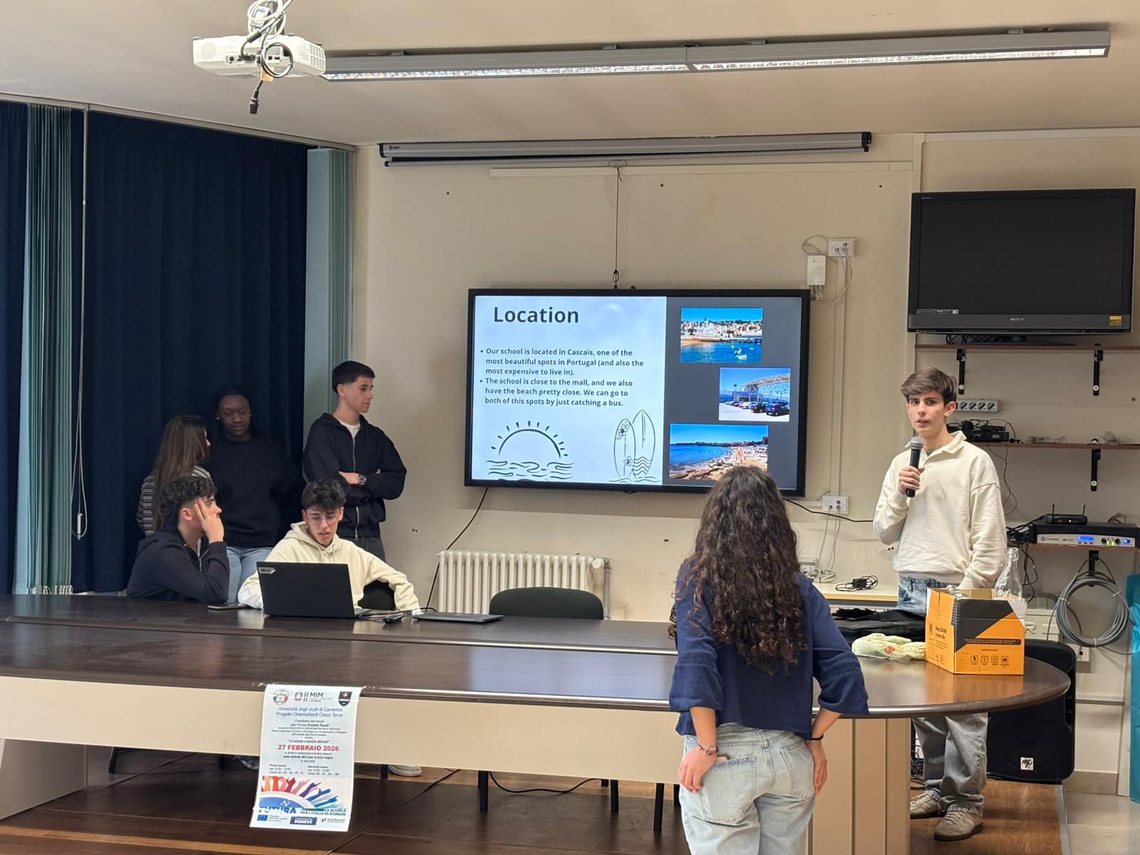 Após a receção pelos seus colegas italianos do Liceo Marie Curie, têm desenvolvido diversas atividades quer na escola quer no exterior. Iniciaram a semana com a apresentação de trabalhos sobre as escolas e a região,seguindo-se, na terça-feira, a visita a San Benedetto, onde passaram a manhã.