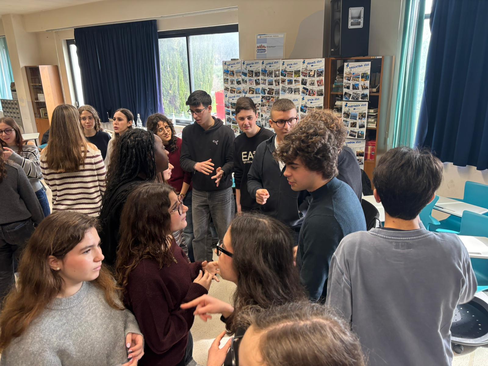 Os alunos portugueses e italianos têm interagido muito bem tanto nas atividades escolares como nas familias. Todos dizem estar a ser muito bem tratados e a comer bastante!