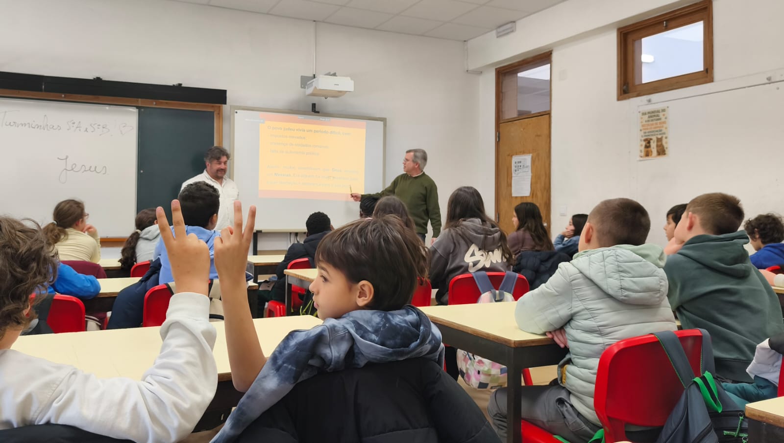 As turmas do 5.º A e 5.º B participaram recentemente numa aula interdisciplinar que juntou as disciplinas de História e Geografia de Portugal (HGP), lecionada pelo Professor José Ferreira (Manuel Pinho), e Educação Moral e Religiosa Católica (EMRC), orientada pelo Professor Pedro Filipe.