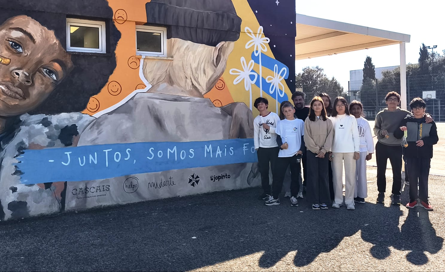 A fotografia final da atividade ilustra de forma clara a importância deste tipo de práticas pedagógicas diferenciadas. A mensagem “Juntos somos mais fortes” simboliza a necessidade de acolher e integrar estes alunos numa nova pátria, com uma nova língua e numa nova família, a comunidade escolar.
