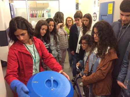 No início da visita, os alunos foram ao biobanco onde estão armazenadas várias amostras biológicas de diferentes indivíduos normais e doentes que mais tarde vão ser utilizadas para pesquisa médica, nomeadamente de várias doenças como por exemplo doenças cardiovasculares e cancro.